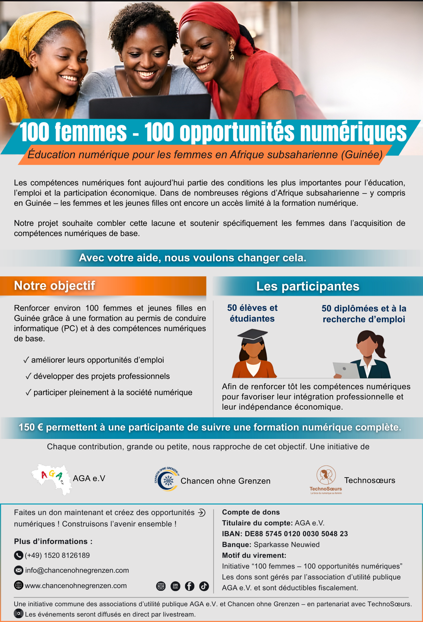 100 Femmes – 100 opportunités numériques Éducation numérique pour les femmes en Afrique subsaharienne (y compris la Guinée) Le mois