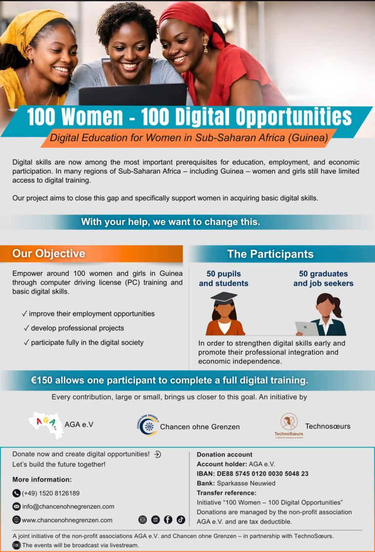 With the “100 Women – 100 Digital Opportunities” initiative, we are collecting donations to enable women and girls in Guinea to acquire essential digital skills.